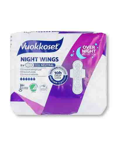 Kertakäyttöinen Vuokkoset Night Wings -yöterveysside, 9 kpl/pkt.