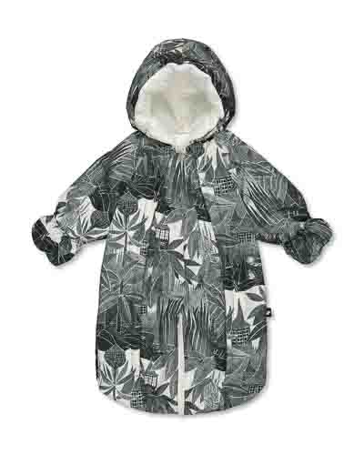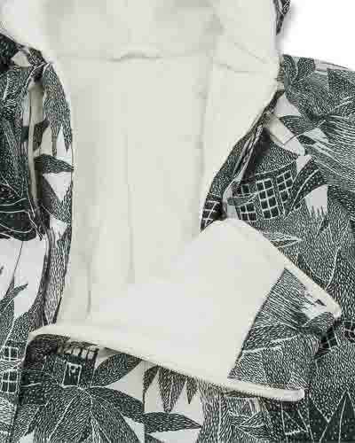 Tuulenpitävä tummanharmaa ulkohaalari, jossa on Muumi-kuosi. Vetoketjukiinnitys. Vuoden 2024 äitiyspakkausta varten järjestetyn yleisöäänestyksen voittanut kuosi. Voittajakuosi sai 36,5 % kaikista 7 024 äänestä.