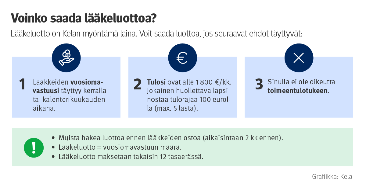 Lue lisää luoton hakemisesta: kela.fi/laakeluotto