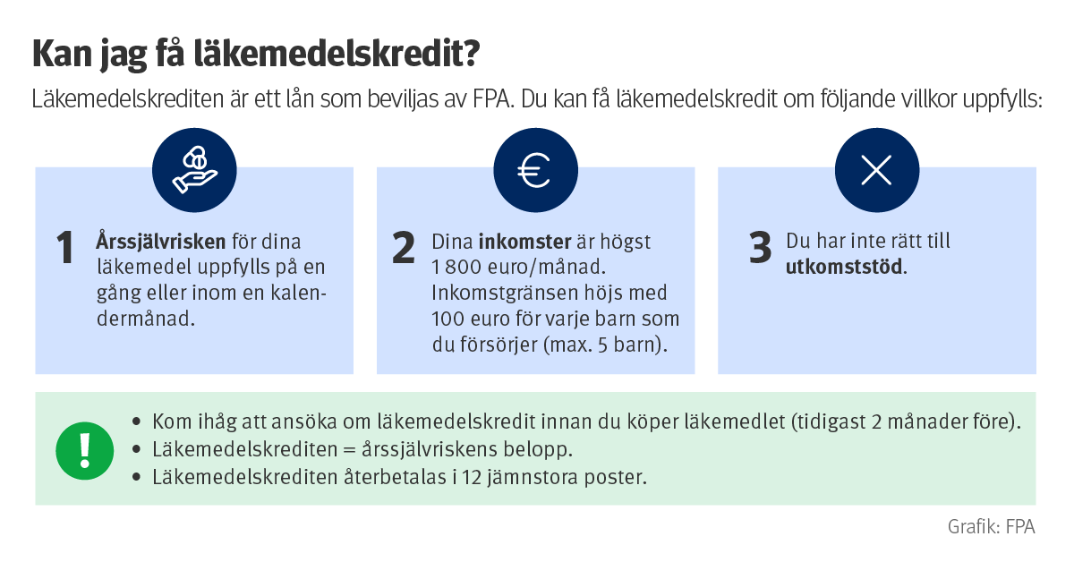 Mer information om hur man ansöker om läkemedelskredit: fpa.fi/lakemedelskredit.