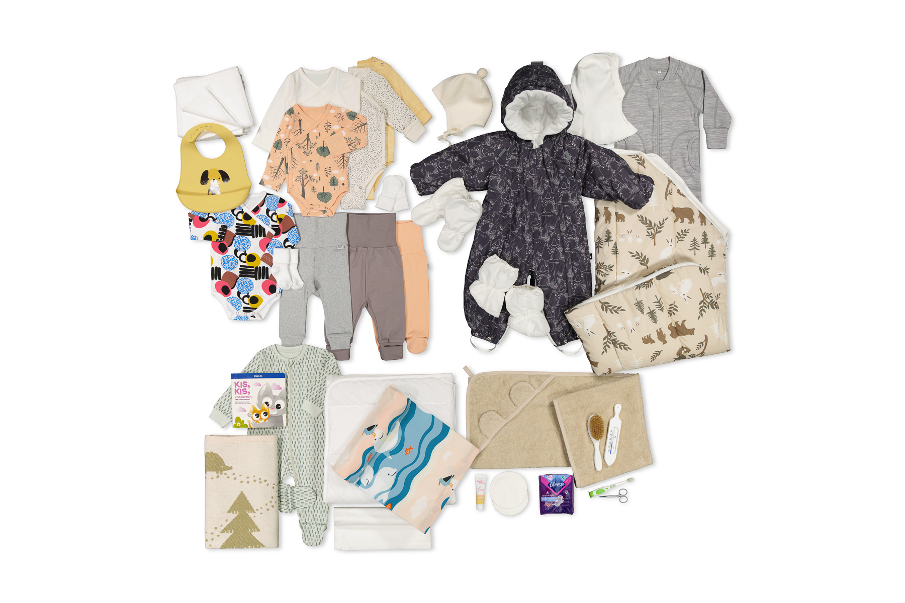 Moderskapsförpackningen 2023 innehåller sammanlagt 38 olika produkter. Dessutom kan lådan också användas som säng.