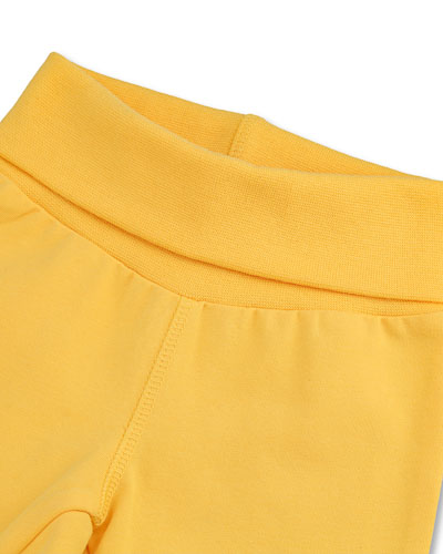 Gula byxor med vändbar resår i midjan.