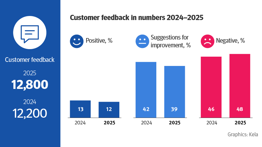 Most of the positive feedback Kela got in 2025 was for personal service provided to customers on the phone and at service points. Customers praised our Customer Service Specialists for giving clear advice with kindness and empathy.