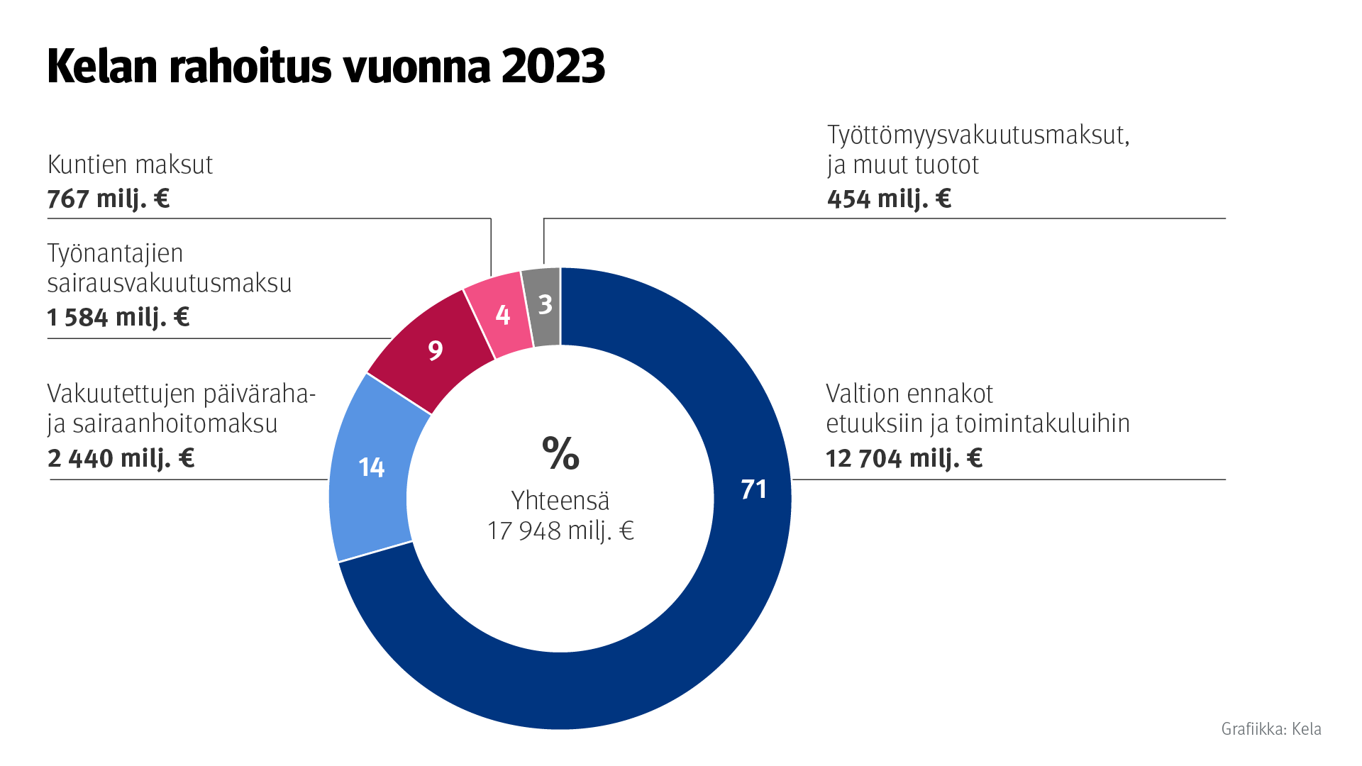 Kelan hoitaman sosiaaliturvan rahoitus toimii periaatteella, jonka mukaan kunkin vuoden kulut rahoitetaan samana vuonna kertyneillä tuotoilla.