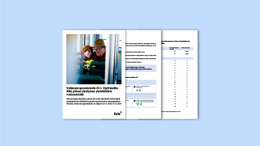 FPA genomför ett försök med valfrihet för personer som fyllt 65 år tillsammans med serviceproducenter inom den privata hälso- och sjukvården. Försöket grundar sig på en temporär ändring av sjukförsäkringslagen och pågår 1.9.2025‒31.12.2027.