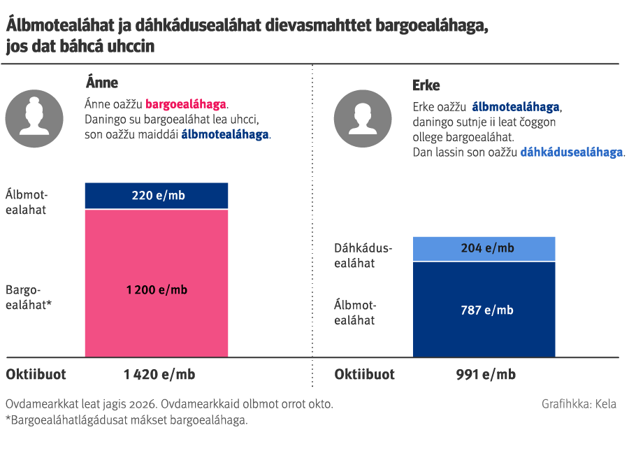 | Bargo- ealáhat e/mb | Álbmot- ealáhat e/mb | Dáhkádus- ealáhat e/mb | Vearru e/mb | Ássandoarjja e/mb | Nettoboađut e/mb* |